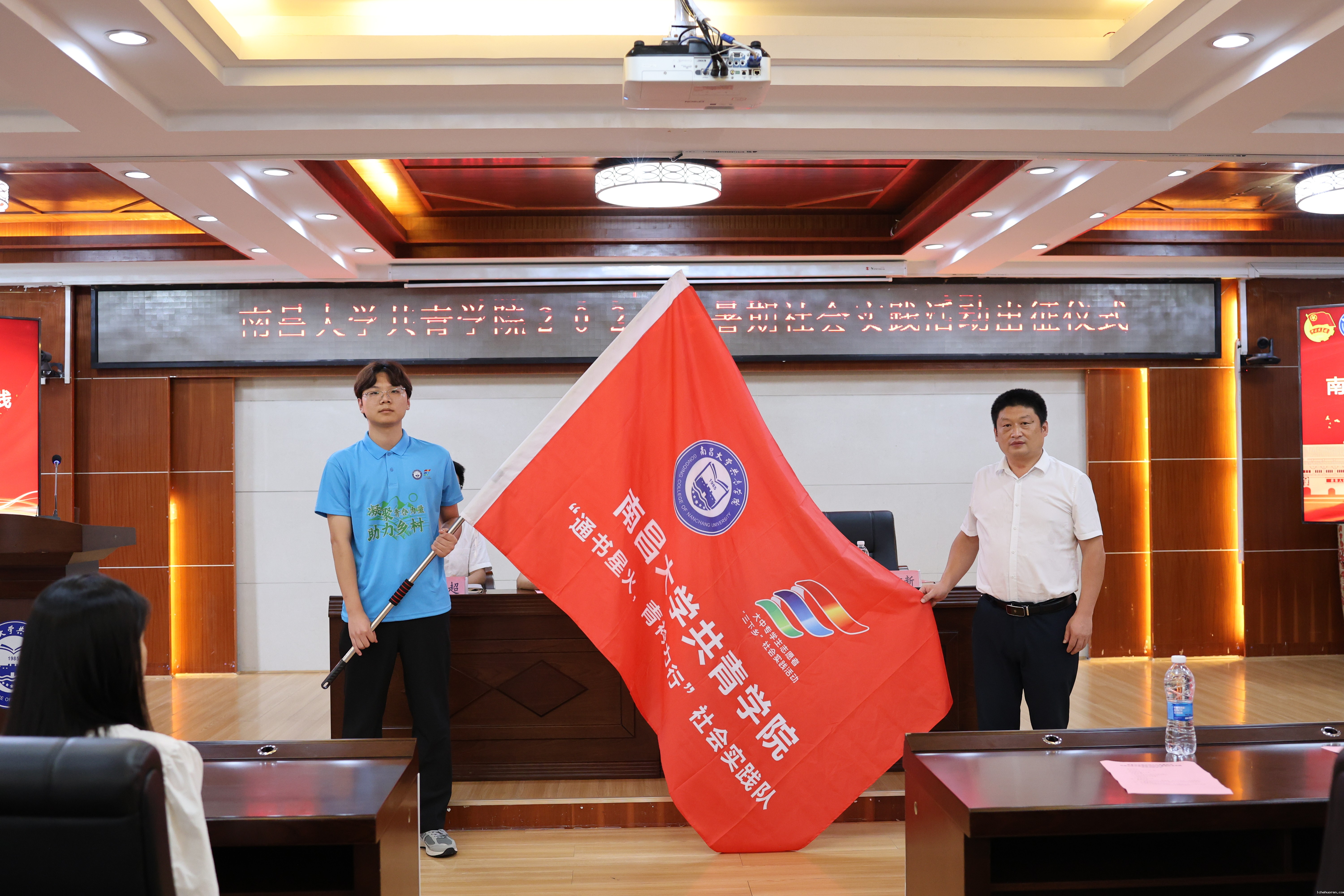 实践团队全体成员庄严宣誓,学工处处长黄肃新为实践团队代表授旗。
